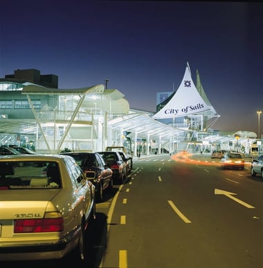 Architects designing a new airport in Auckland, New Zealand, used Shelter-Rite® architectural fabric to create an impressive and functional entryway, illustrating Auckland's "City of Sails" theme.